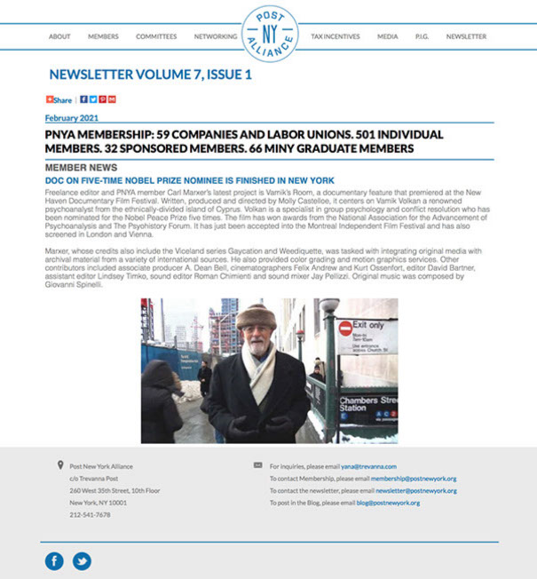 My work on the documentary "Vamik's Room" is recognized in the PNYA Newsletter.